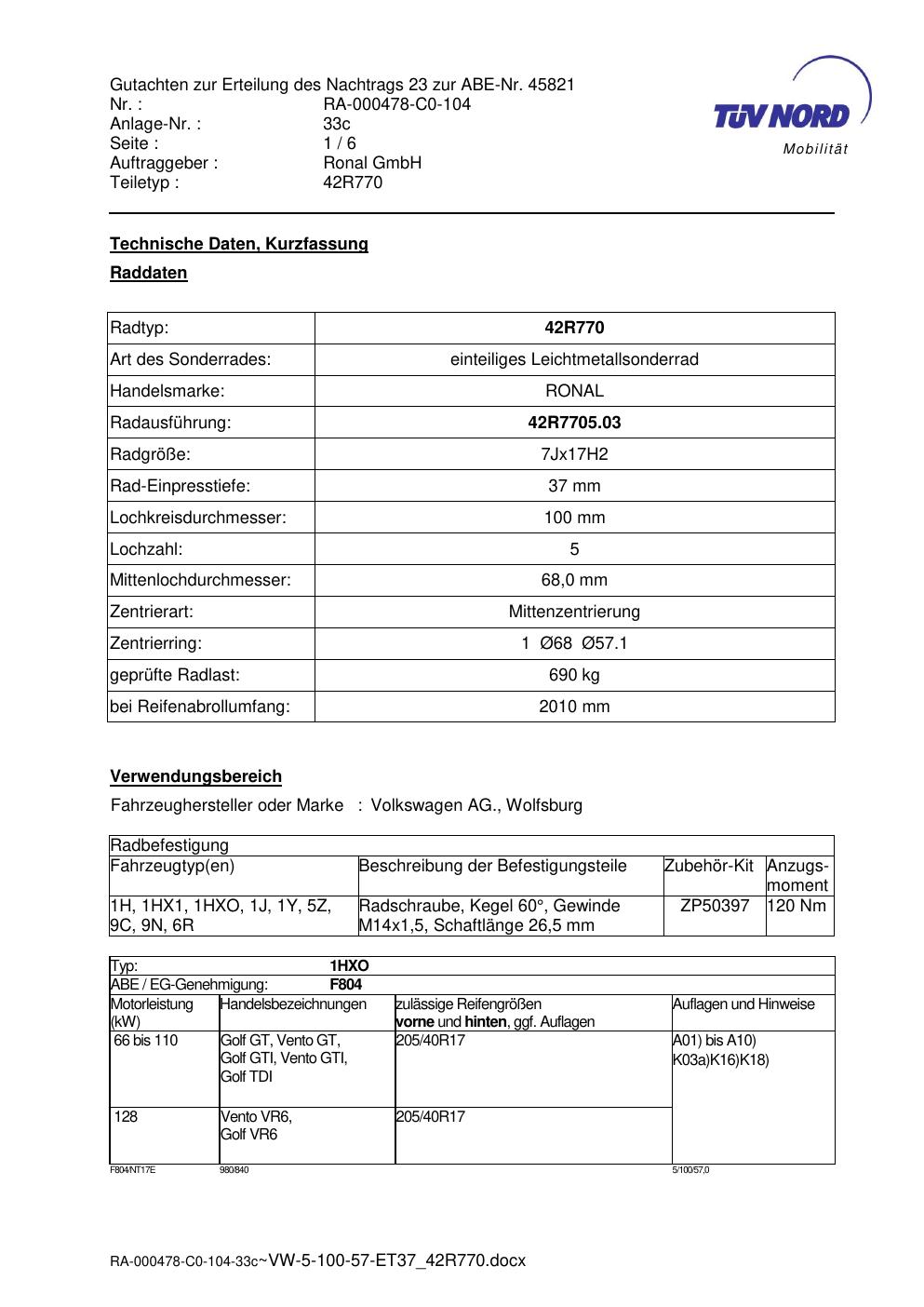 Dieses abe gehört zur Felge Ronal 42R770 in 7Jx17 ET0 mit KBA 45821. Die Seite ist dafür gedacht, dass du schnell prüfen kannst, ob KBA, Design und Größe zu deiner Felge passen und danach direkt das richtige PDF lädst.