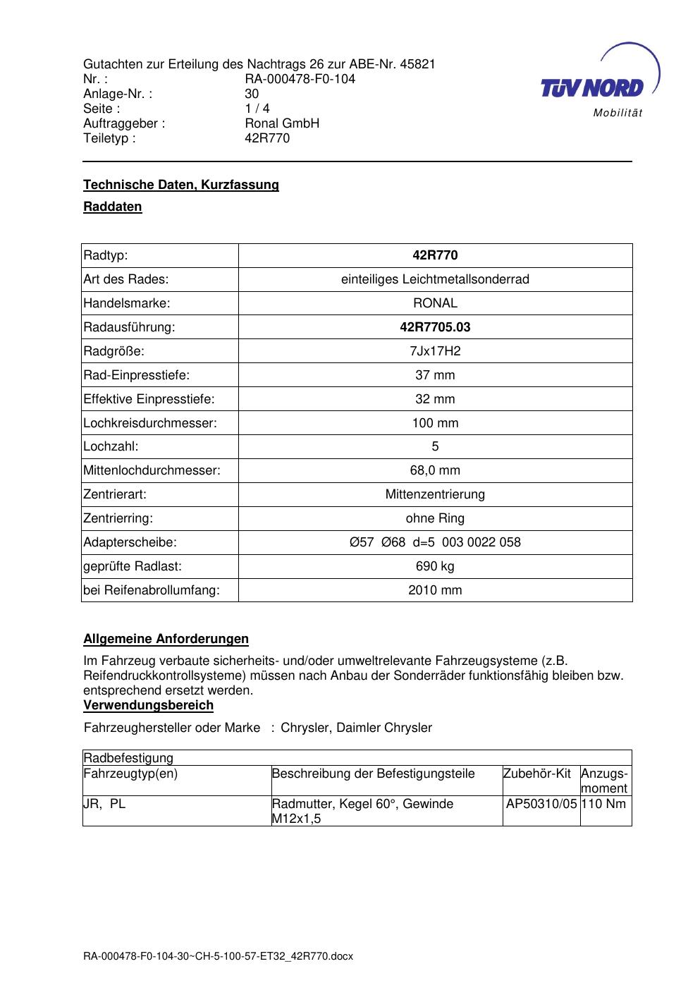 Dieses abe gehört zur Felge Ronal 42R770 in 7Jx17 ET0 mit KBA 45821. Die Seite ist dafür gedacht, dass du schnell prüfen kannst, ob KBA, Design und Größe zu deiner Felge passen und danach direkt das richtige PDF lädst.