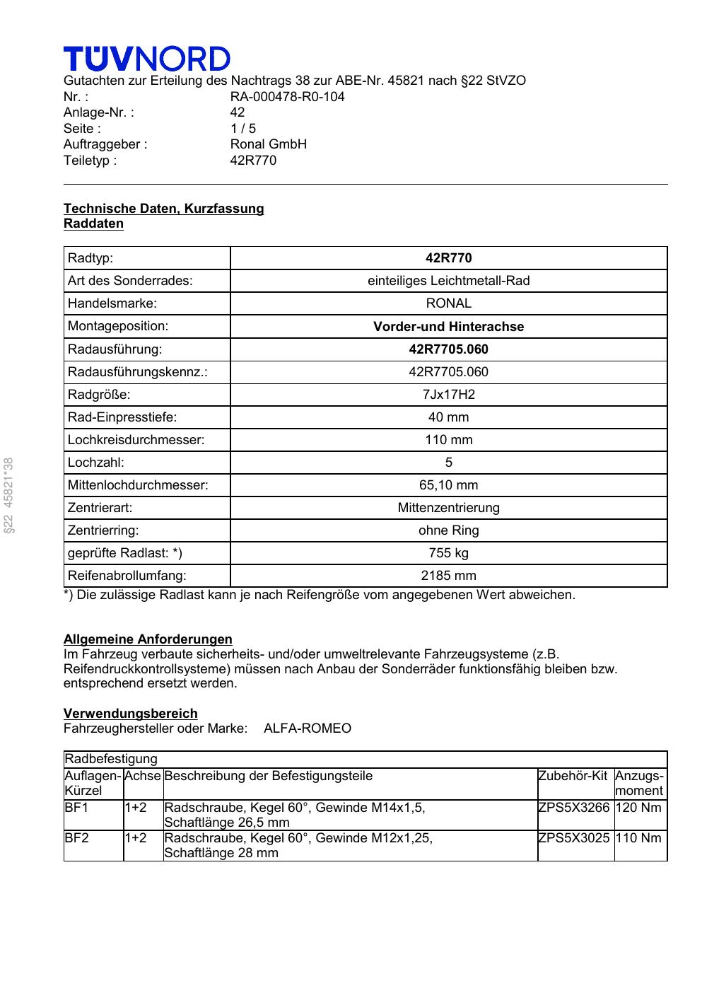 Dieses abe gehört zur Felge Ronal 42R770 in 7Jx17 ET0 mit KBA 45821. Die Seite ist dafür gedacht, dass du schnell prüfen kannst, ob KBA, Design und Größe zu deiner Felge passen und danach direkt das richtige PDF lädst.