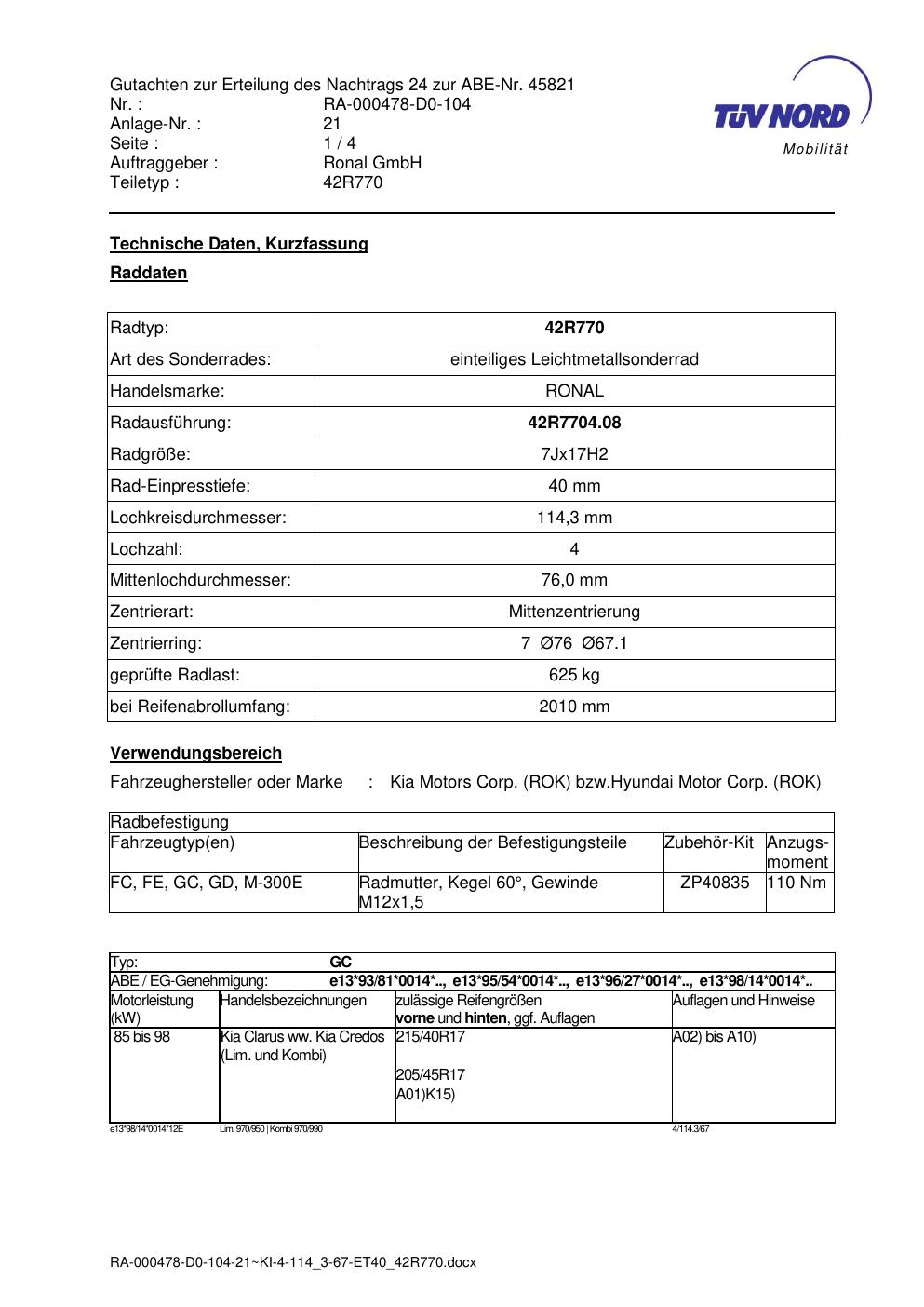 Dieses abe gehört zur Felge Ronal 42R770 in 7Jx17 ET0 mit KBA 45821. Die Seite ist dafür gedacht, dass du schnell prüfen kannst, ob KBA, Design und Größe zu deiner Felge passen und danach direkt das richtige PDF lädst.