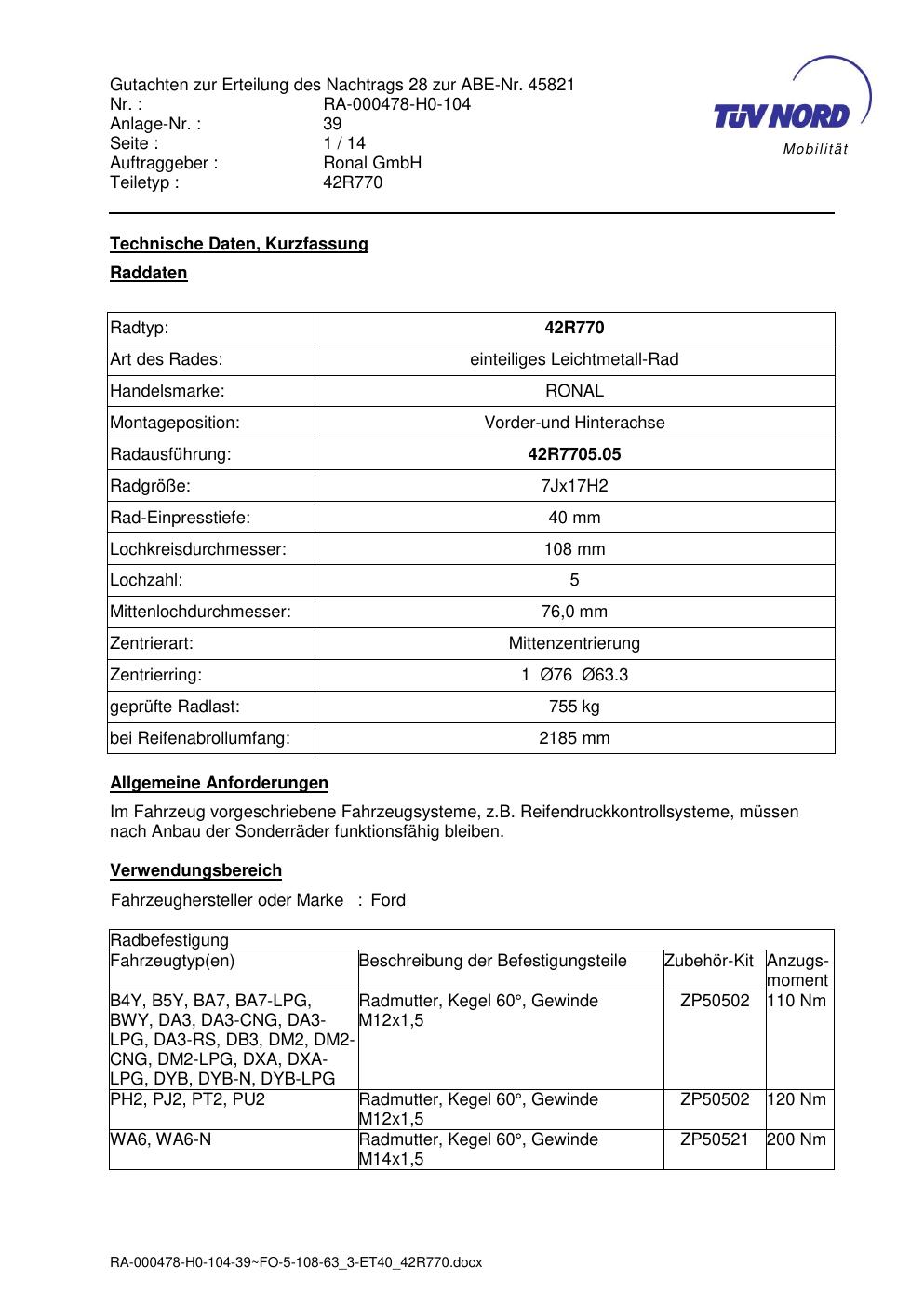 Dieses abe gehört zur Felge Ronal 42R770 in 7Jx17 ET0 mit KBA 45821. Die Seite ist dafür gedacht, dass du schnell prüfen kannst, ob KBA, Design und Größe zu deiner Felge passen und danach direkt das richtige PDF lädst.