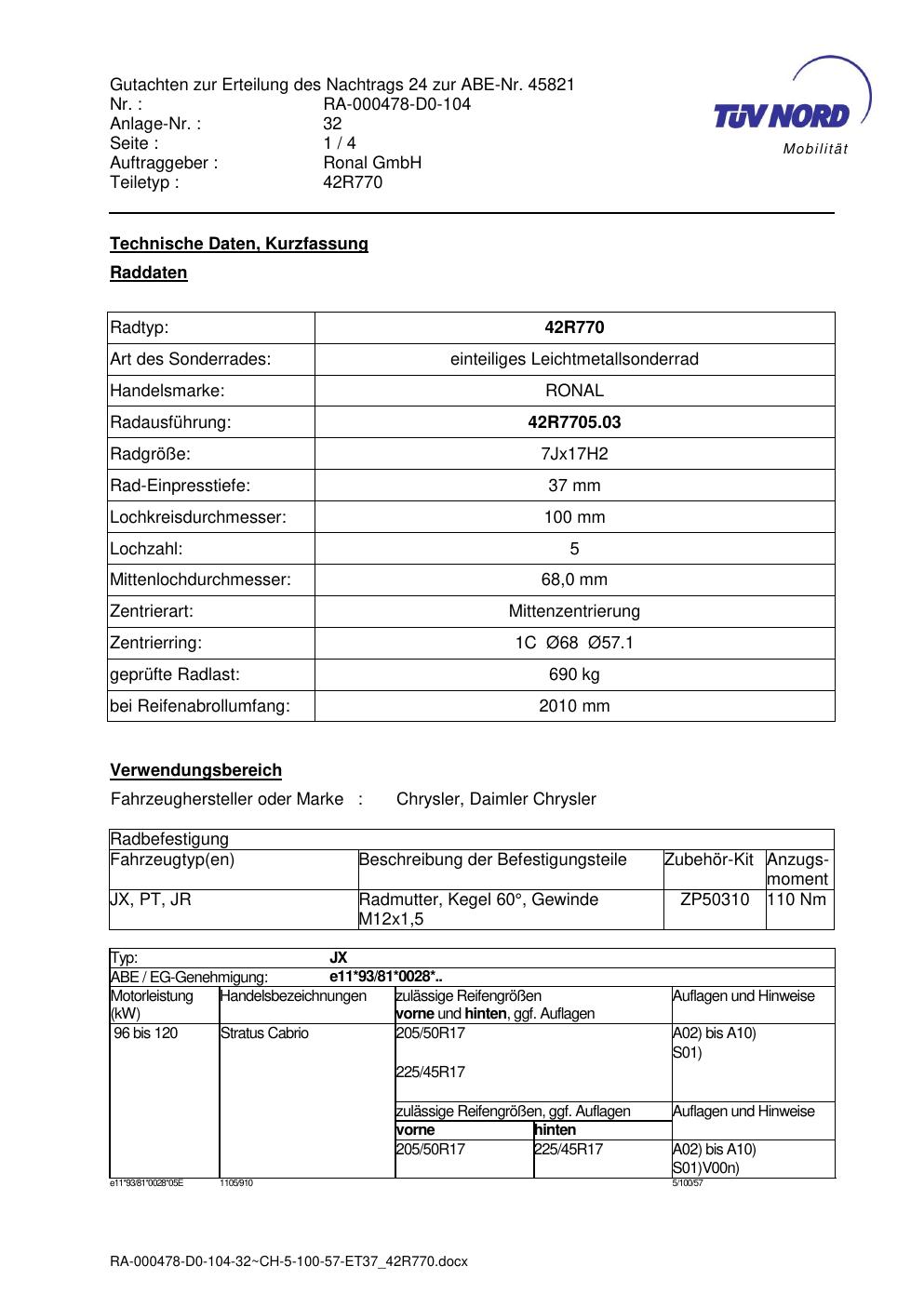 Dieses abe gehört zur Felge Ronal 42R770 in 7Jx17 ET0 mit KBA 45821. Die Seite ist dafür gedacht, dass du schnell prüfen kannst, ob KBA, Design und Größe zu deiner Felge passen und danach direkt das richtige PDF lädst.