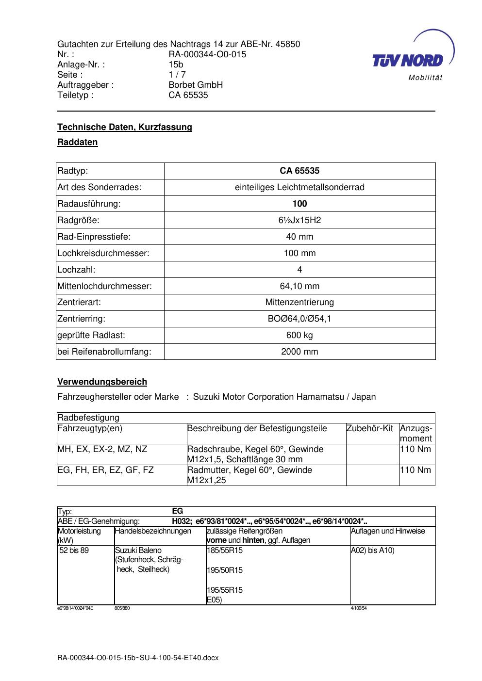 Dieses Gutachten (abe) bezieht sich auf die Alufelge ATS CA 65535 in der Ausführung ET 0, Mittenloch 0 mm (KBA 45850). Im PDF findest du typischerweise zulässige Reifengrößen, Auflagen/Anbauhinweise und – je nach Dokument – Hinweise zur Eintragung.