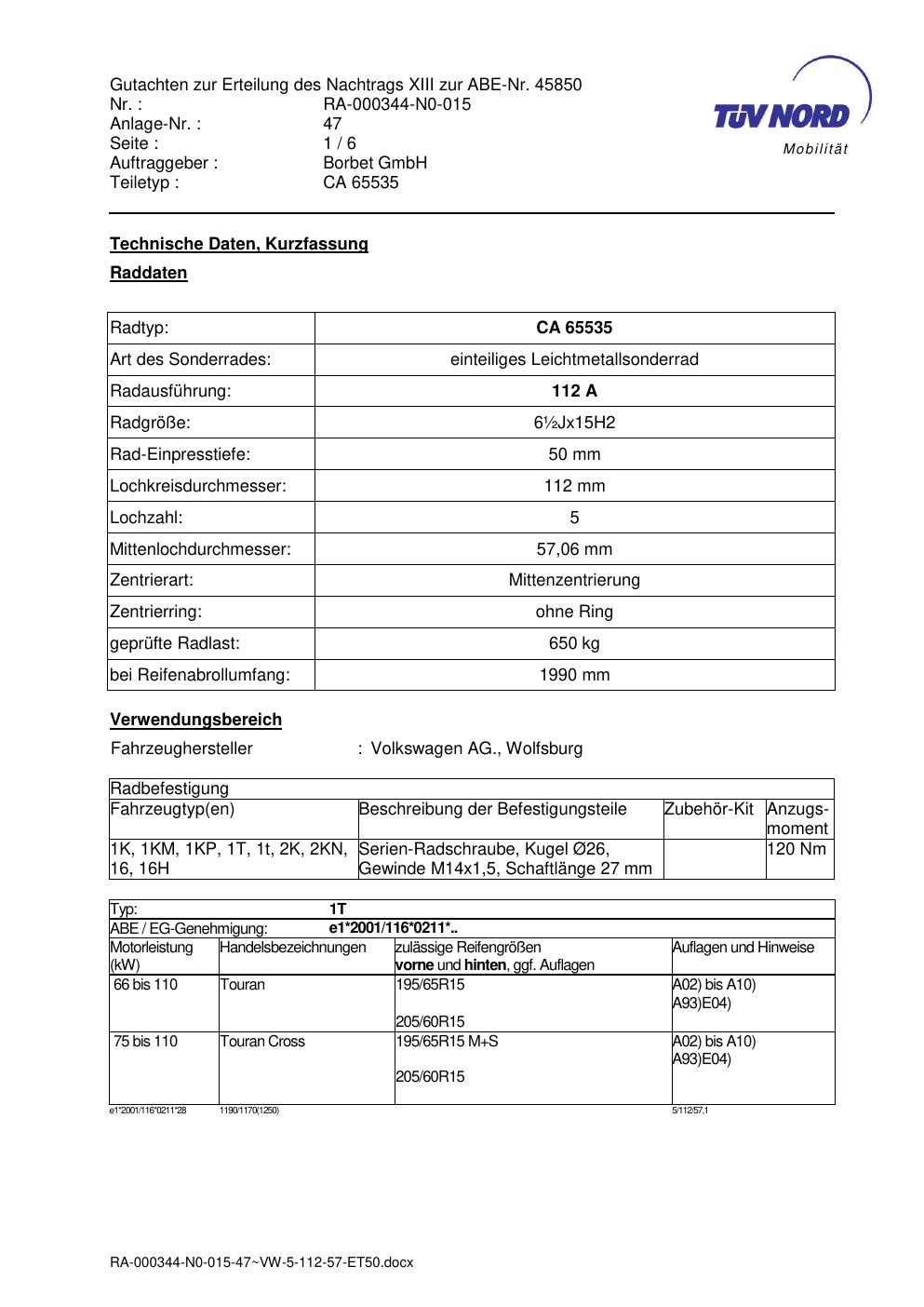 Dieses Dokument ist vor allem dann hilfreich, wenn du bereits eine konkrete KBA-Nummer, eine bestimmte Felge oder eine bekannte Zollgröße suchst.