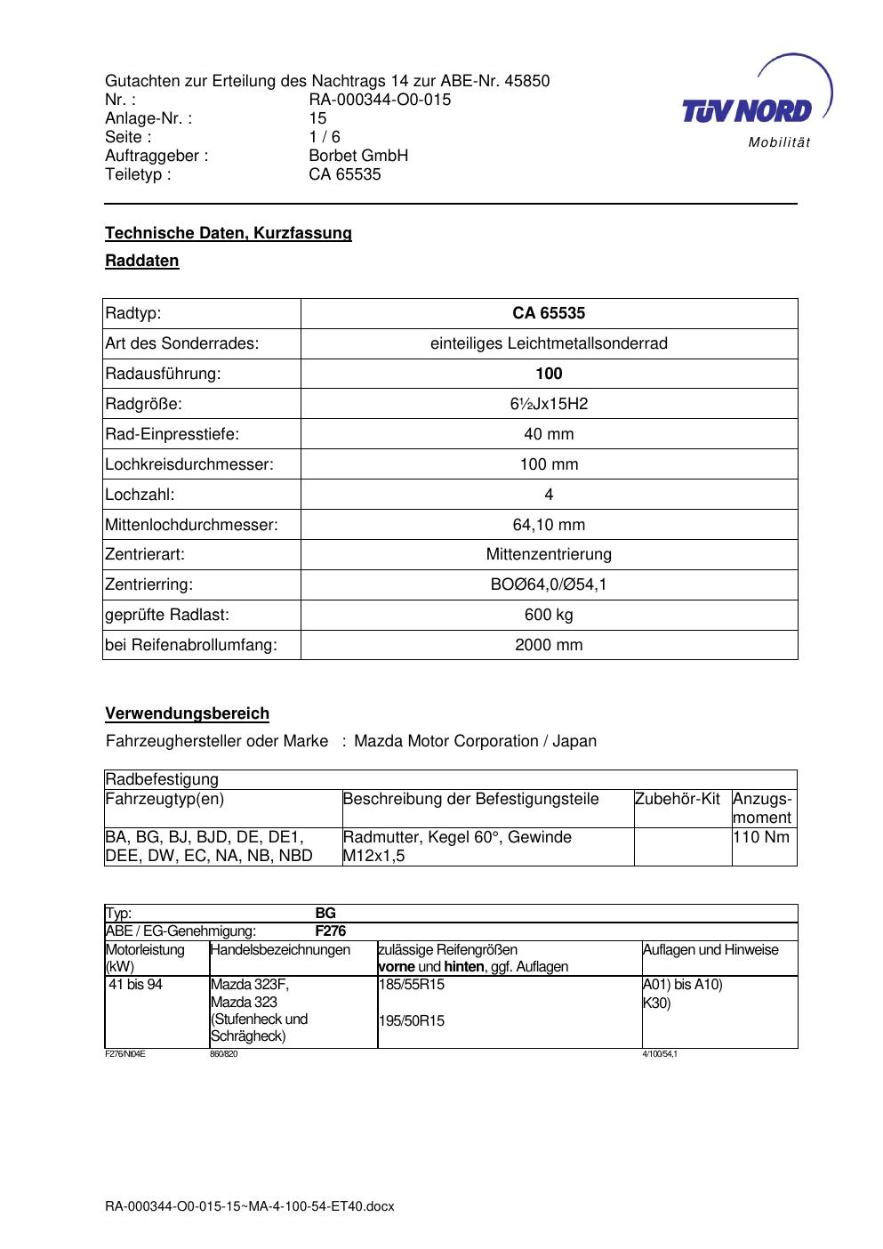 Dieses Dokument ist vor allem dann hilfreich, wenn du bereits eine konkrete KBA-Nummer, eine bestimmte Felge oder eine bekannte Zollgröße suchst.