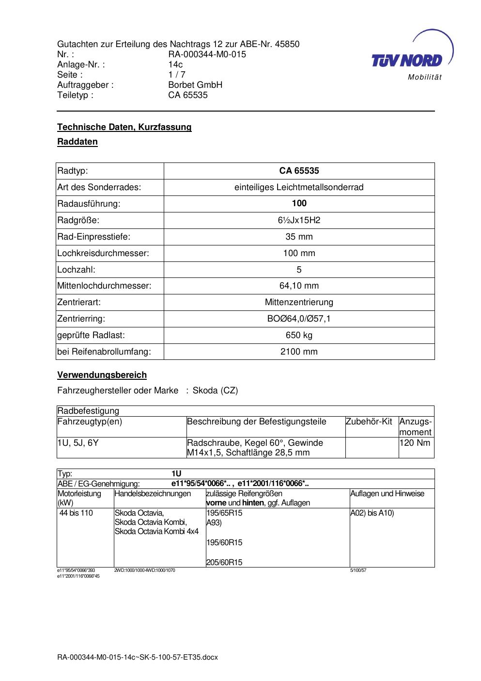 • Stimmt die KBA-Nummer auf der Felge mit diesem Dokument überein?