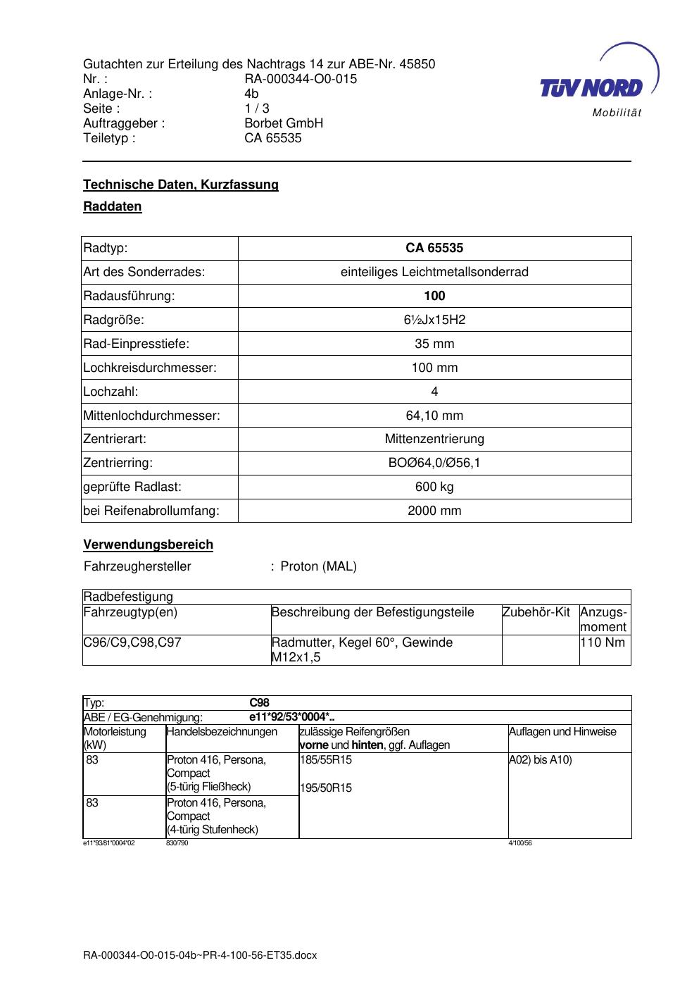 • Stimmt die KBA-Nummer auf der Felge mit diesem Dokument überein?