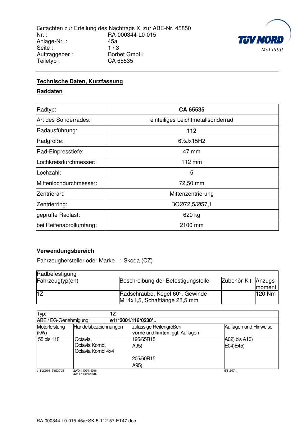 • Stimmt die KBA-Nummer auf der Felge mit diesem Dokument überein?