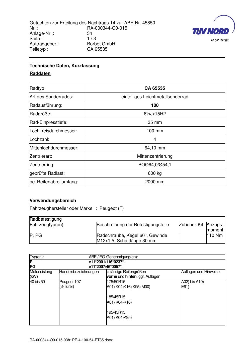 • Stimmt die KBA-Nummer auf der Felge mit diesem Dokument überein?