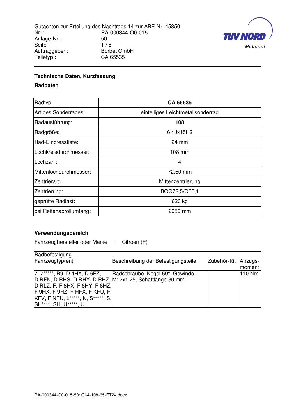 Dieses Dokument ist vor allem dann hilfreich, wenn du bereits eine konkrete KBA-Nummer, eine bestimmte Felge oder eine bekannte Zollgröße suchst.