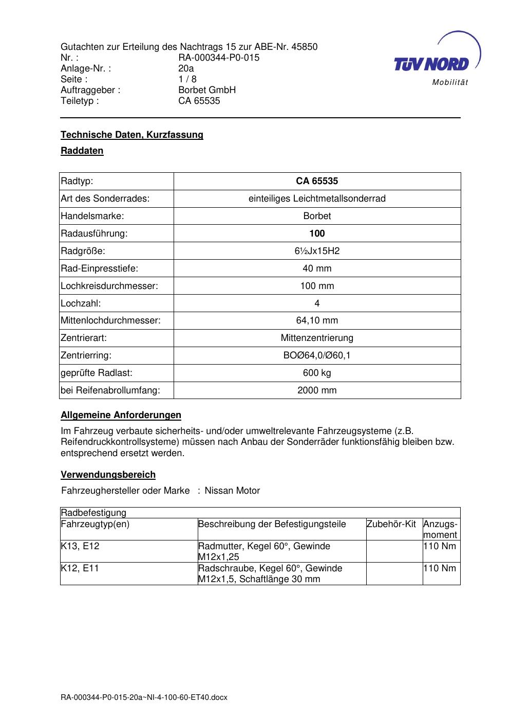 • Stimmt die KBA-Nummer auf der Felge mit diesem Dokument überein?