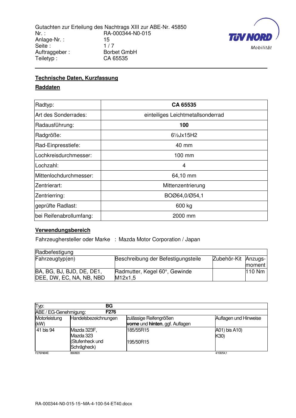 Dieses Dokument ist vor allem dann hilfreich, wenn du bereits eine konkrete KBA-Nummer, eine bestimmte Felge oder eine bekannte Zollgröße suchst.