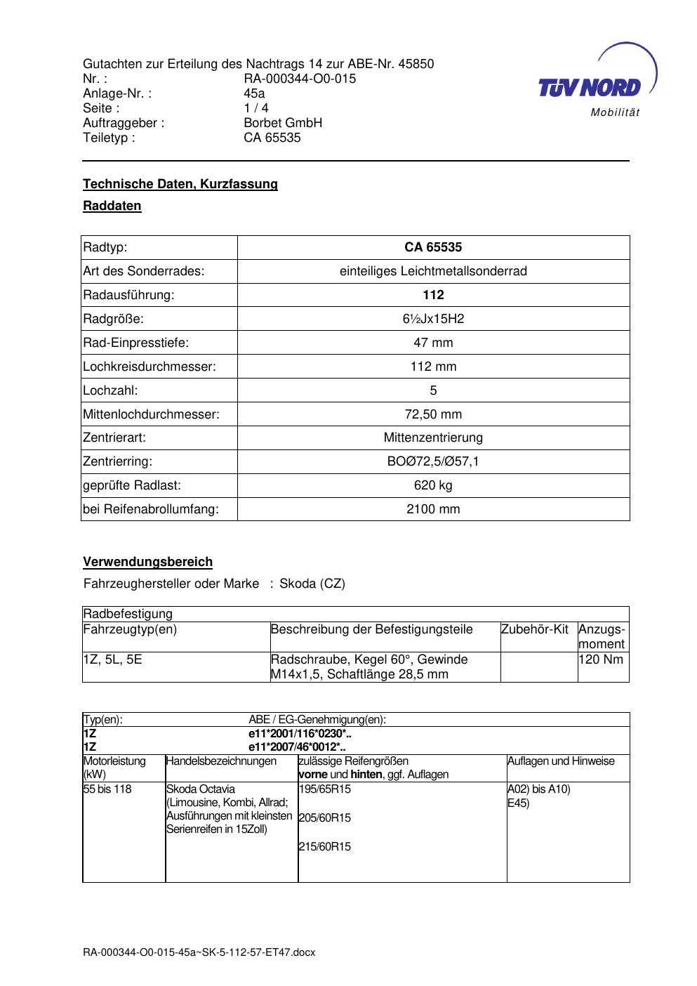 Dieses Dokument ist vor allem dann hilfreich, wenn du bereits eine konkrete KBA-Nummer, eine bestimmte Felge oder eine bekannte Zollgröße suchst.