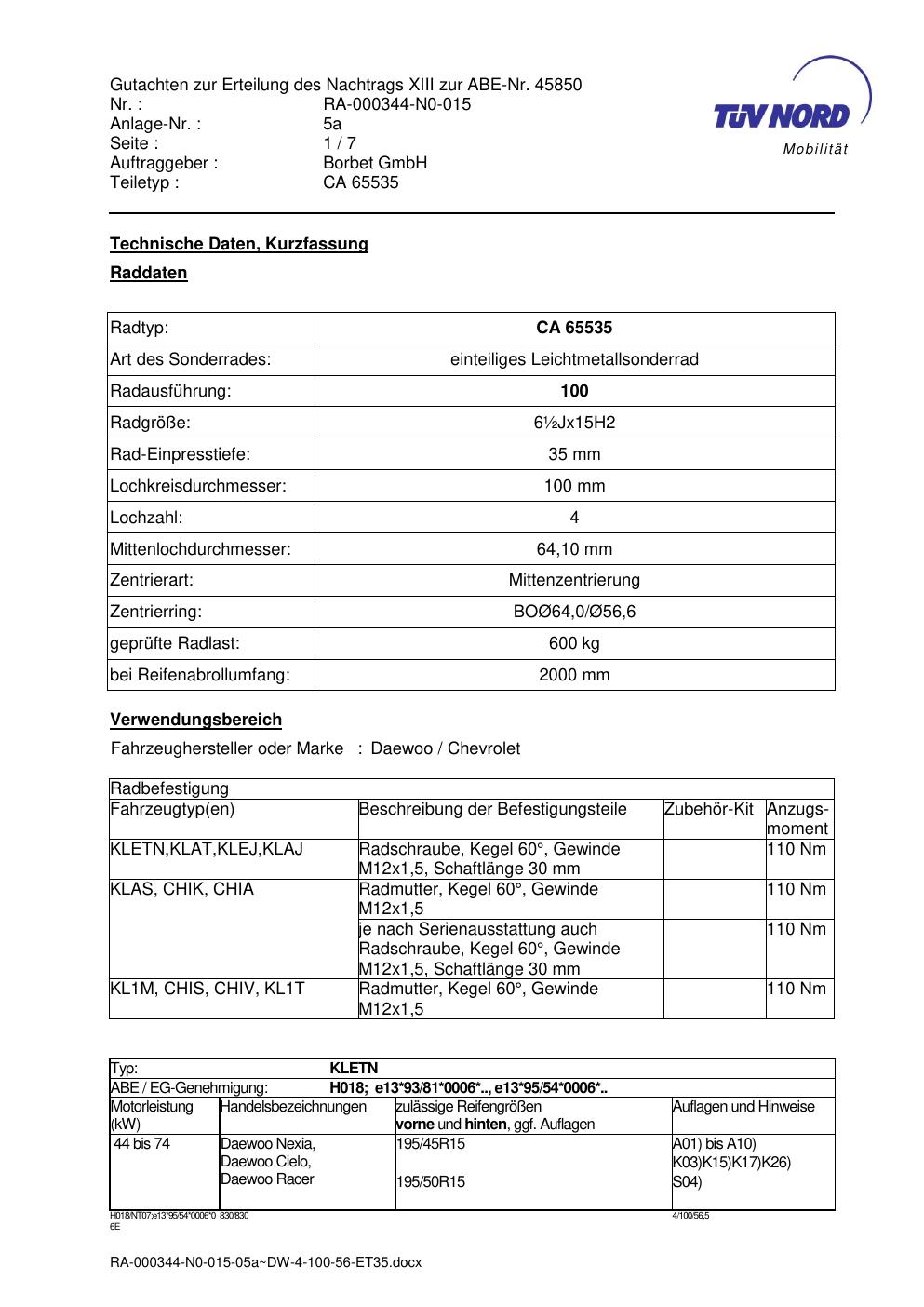 • Stimmt die KBA-Nummer auf der Felge mit diesem Dokument überein?