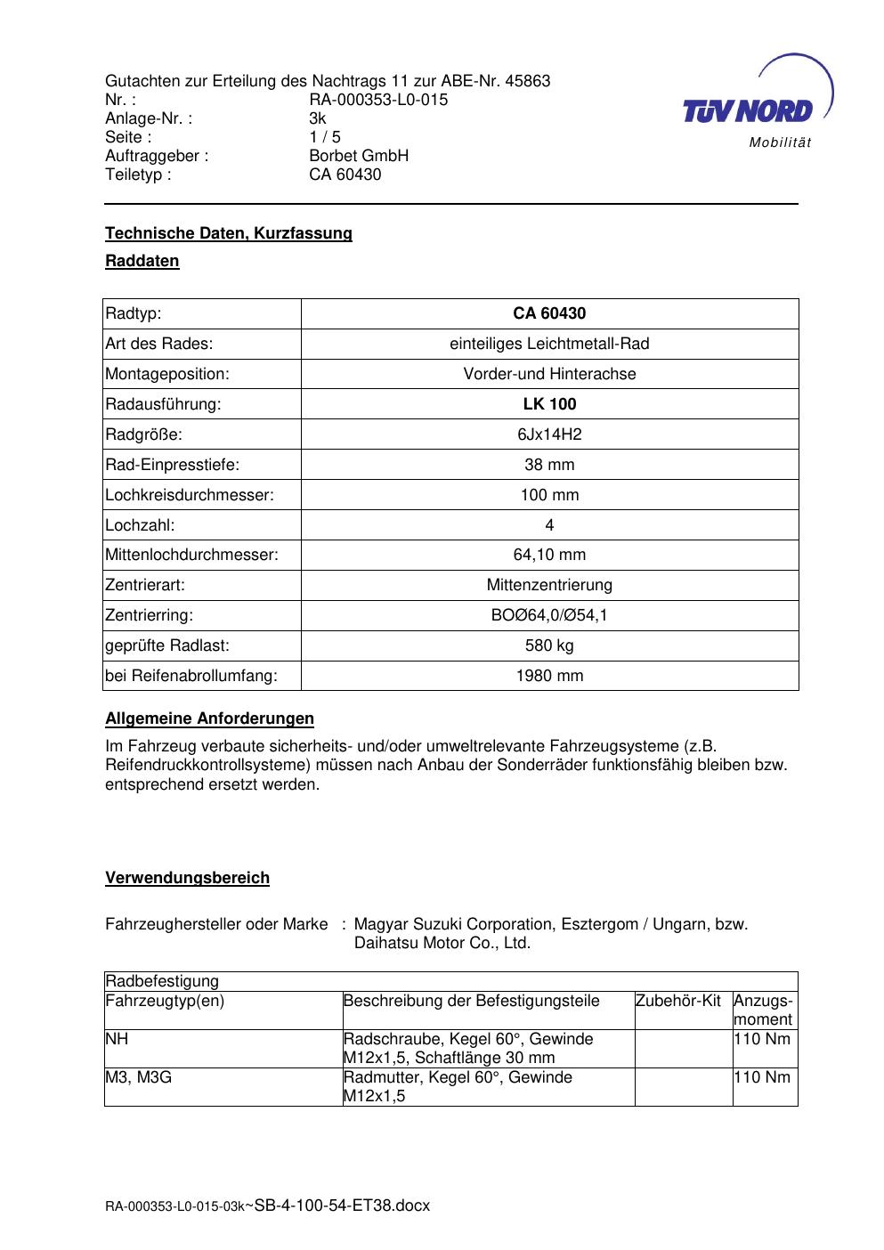 Dieses Gutachten (abe) bezieht sich auf die Alufelge ATS CA 60430 in der Ausführung 6Jx14 ET 0, Mittenloch 0 mm (KBA 45863). Im PDF findest du typischerweise zulässige Reifengrößen, Auflagen/Anbauhinweise und – je nach Dokument – Hinweise zur Eintragung.