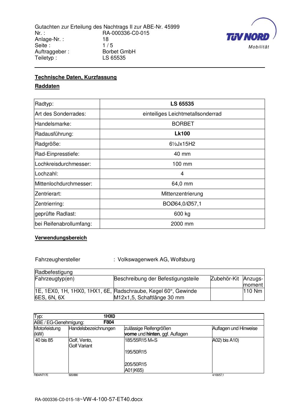 • Stimmt die KBA-Nummer auf der Felge mit diesem Dokument überein?