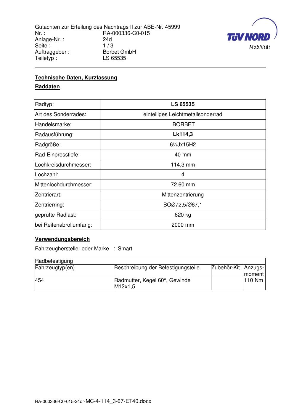 • Stimmt die KBA-Nummer auf der Felge mit diesem Dokument überein?