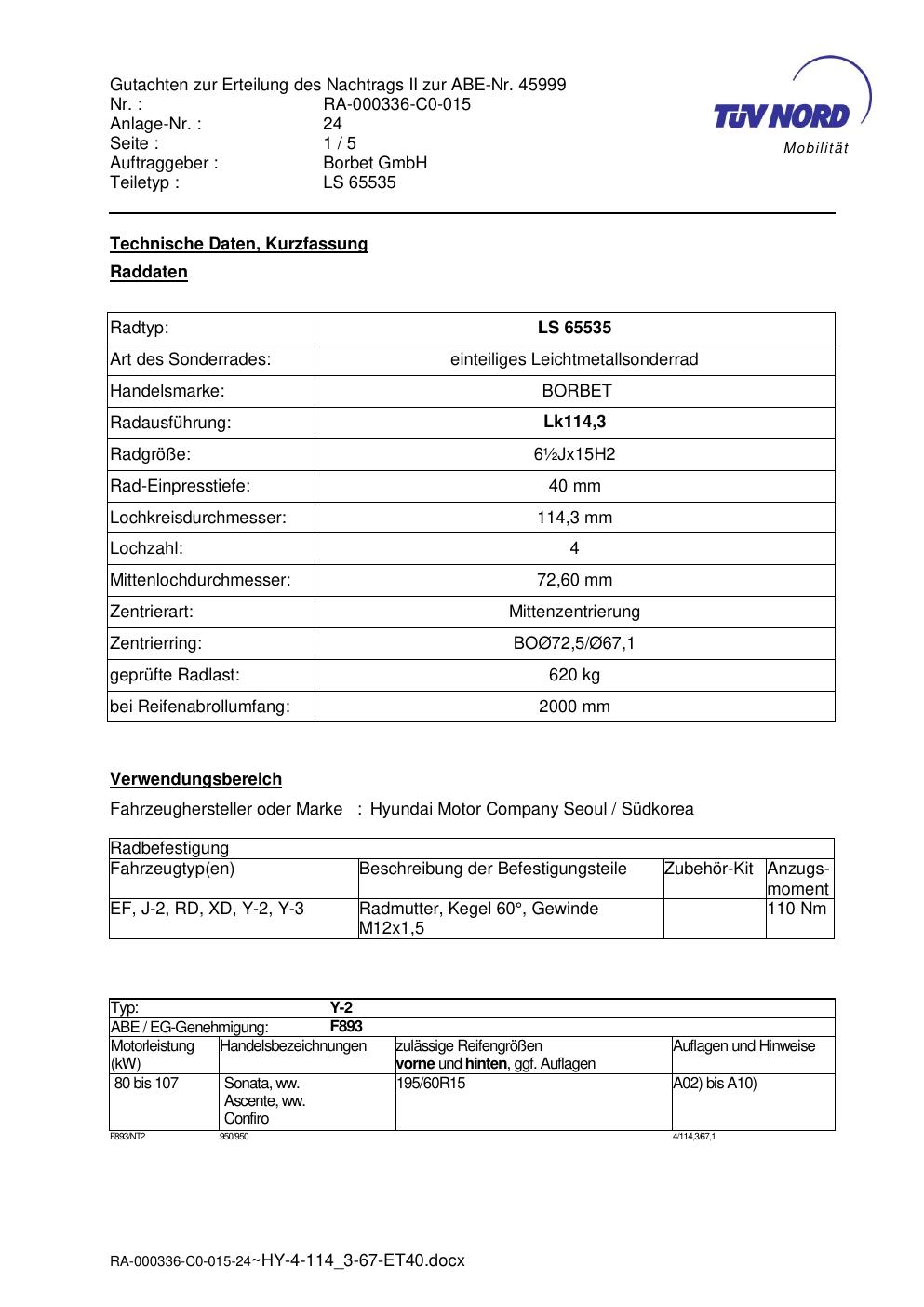 • Stimmt die KBA-Nummer auf der Felge mit diesem Dokument überein?