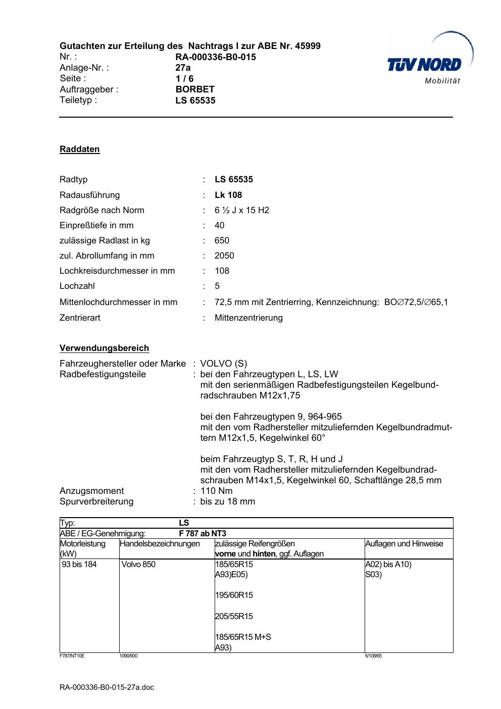 • Stimmt die KBA-Nummer auf der Felge mit diesem Dokument überein?