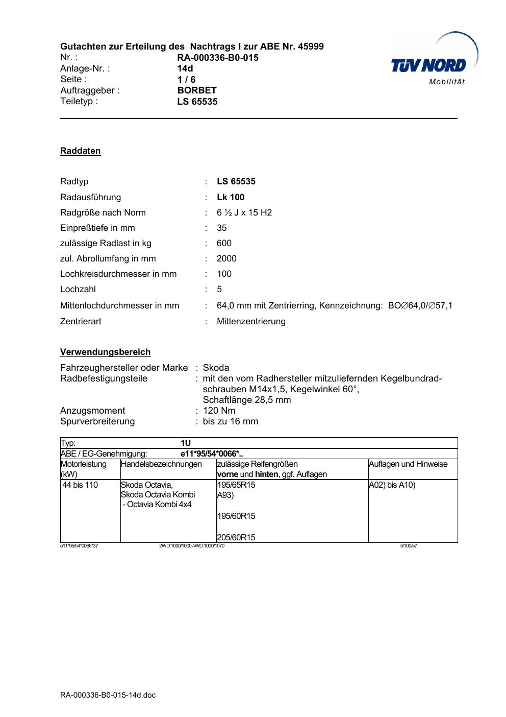 • Stimmt die KBA-Nummer auf der Felge mit diesem Dokument überein?