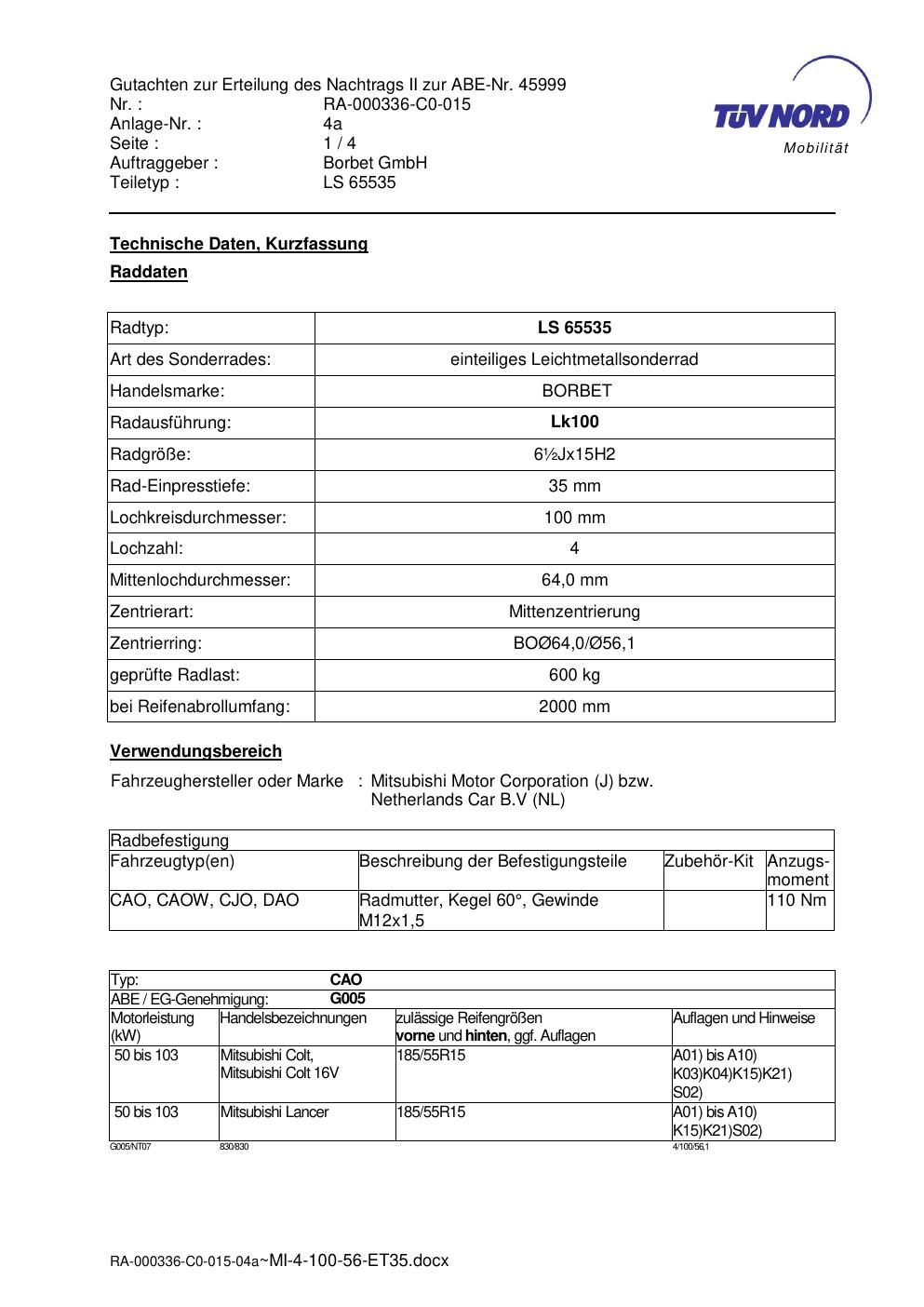 • Stimmt die KBA-Nummer auf der Felge mit diesem Dokument überein?