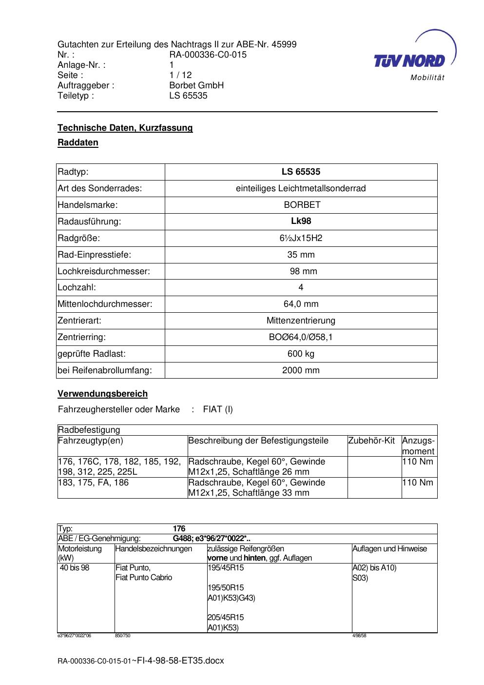 • Stimmt die KBA-Nummer auf der Felge mit diesem Dokument überein?