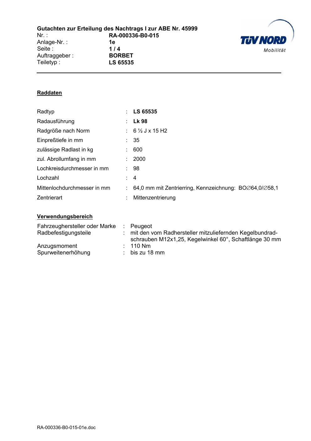• Stimmt die KBA-Nummer auf der Felge mit diesem Dokument überein?
