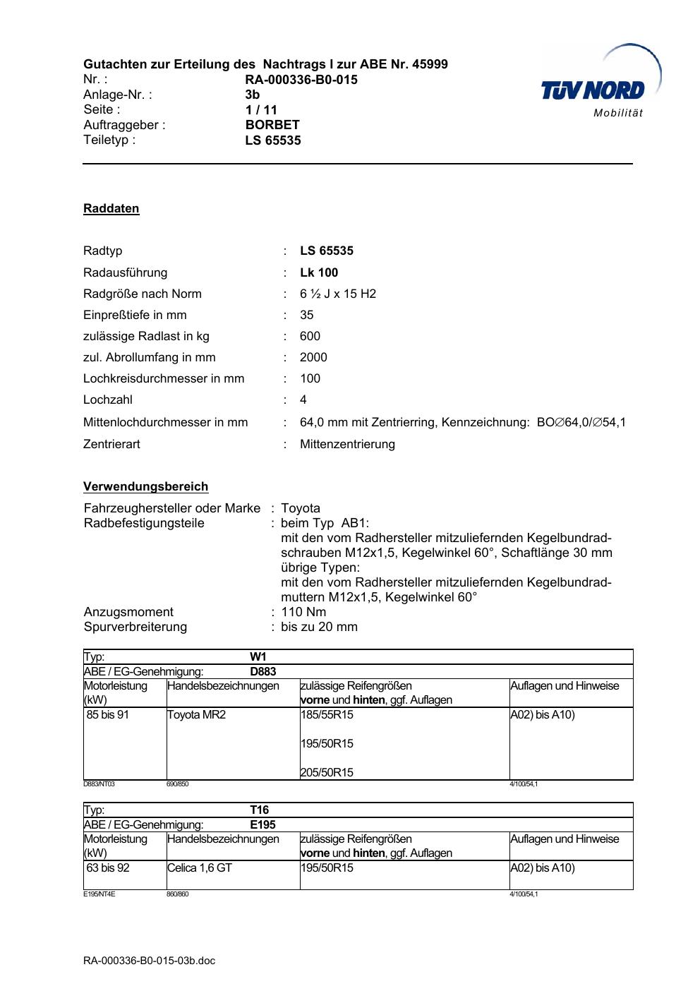 - Stimmt die KBA-Nummer auf der Felge mit diesem Dokument überein?