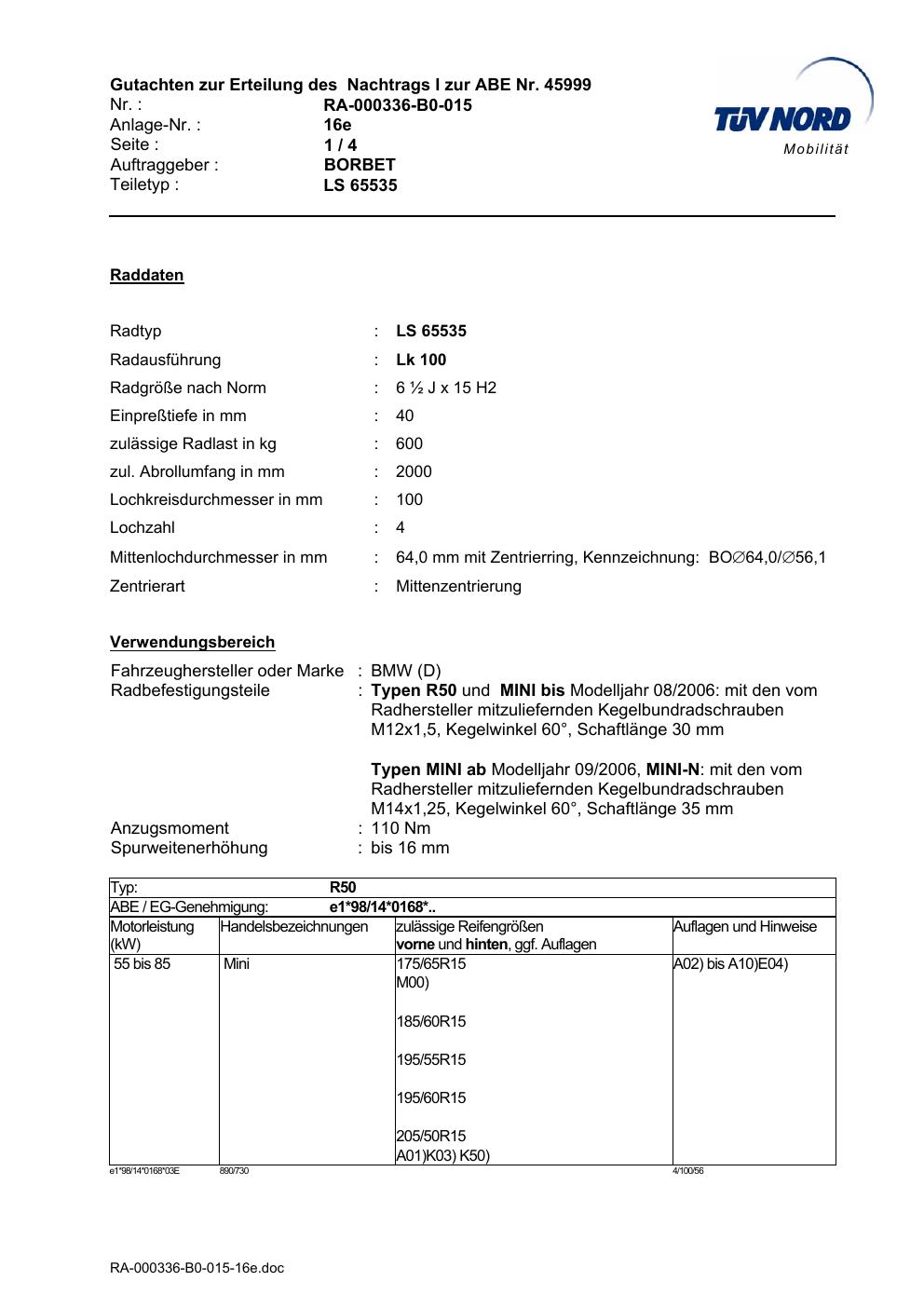 • Stimmt die KBA-Nummer auf der Felge mit diesem Dokument überein?