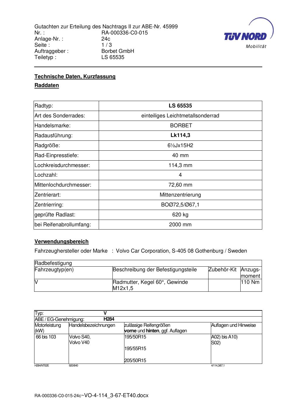 • Stimmt die KBA-Nummer auf der Felge mit diesem Dokument überein?
