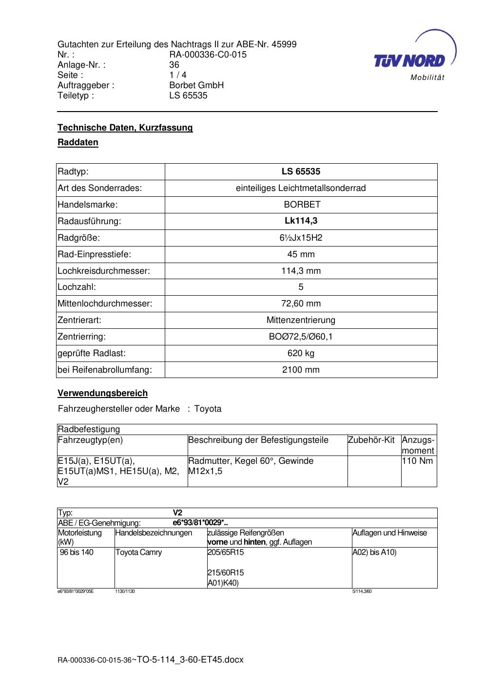 • Stimmt die KBA-Nummer auf der Felge mit diesem Dokument überein?