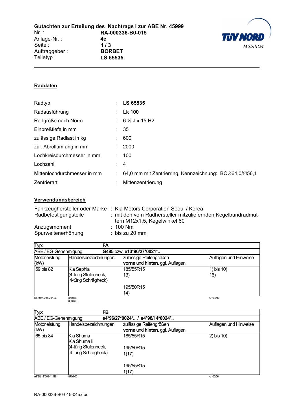 - Stimmt die KBA-Nummer auf der Felge mit diesem Dokument überein?