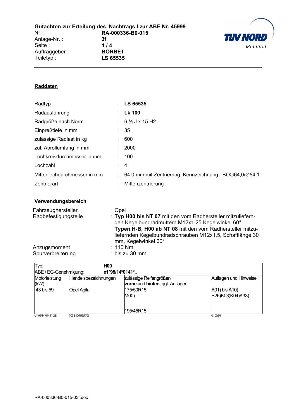 • Stimmt die KBA-Nummer auf der Felge mit diesem Dokument überein?