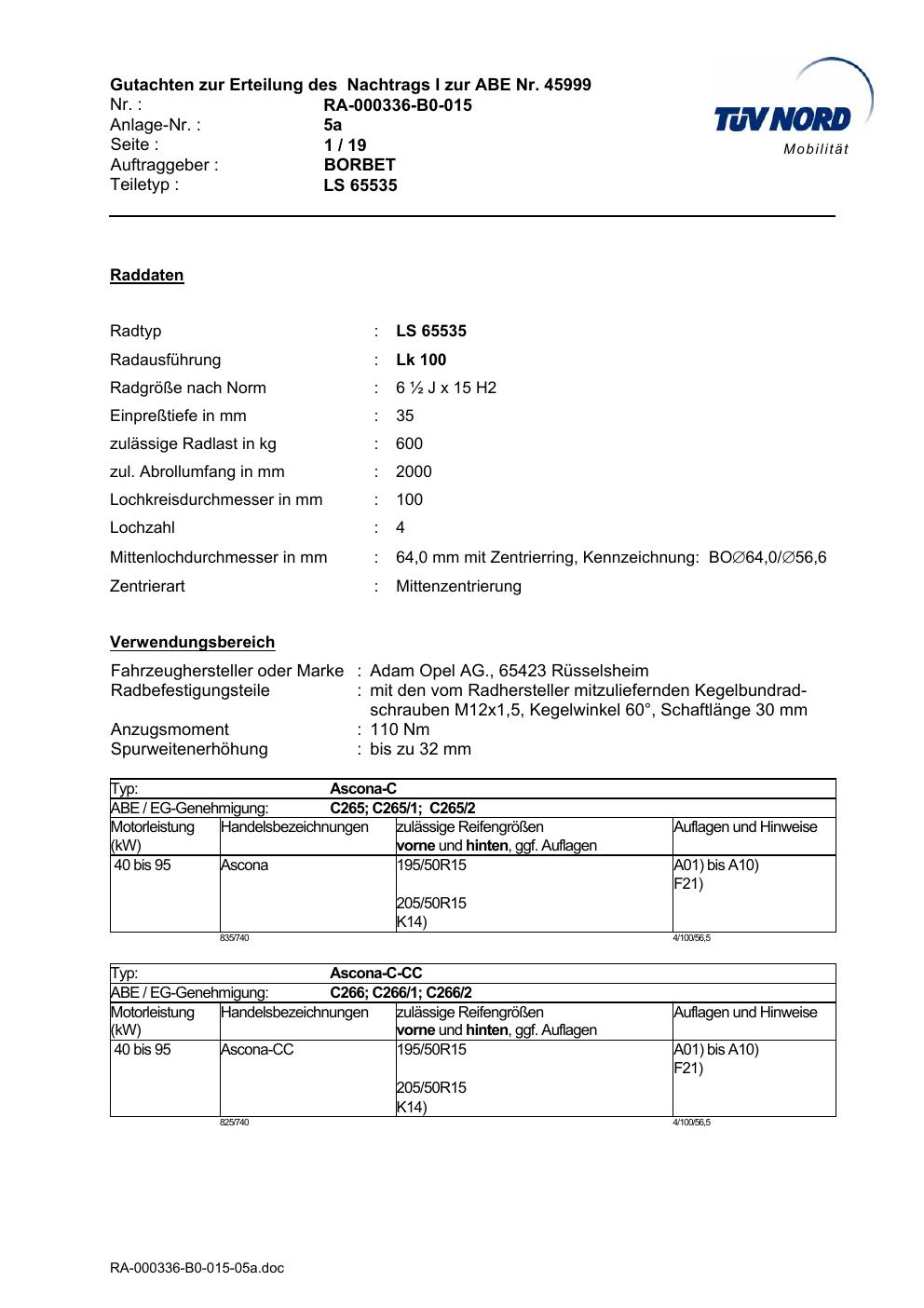 • Stimmt die KBA-Nummer auf der Felge mit diesem Dokument überein?