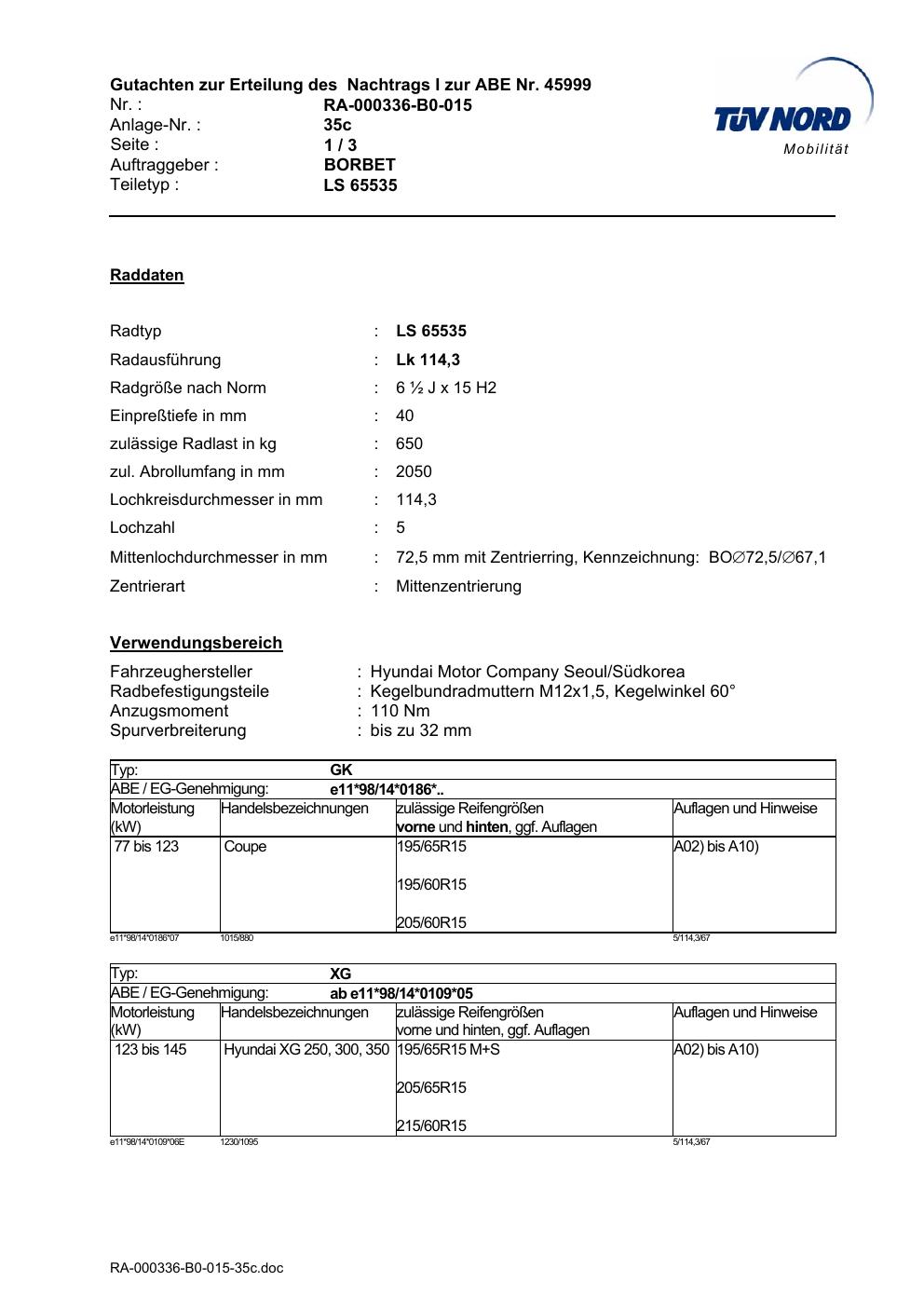 • Stimmt die KBA-Nummer auf der Felge mit diesem Dokument überein?