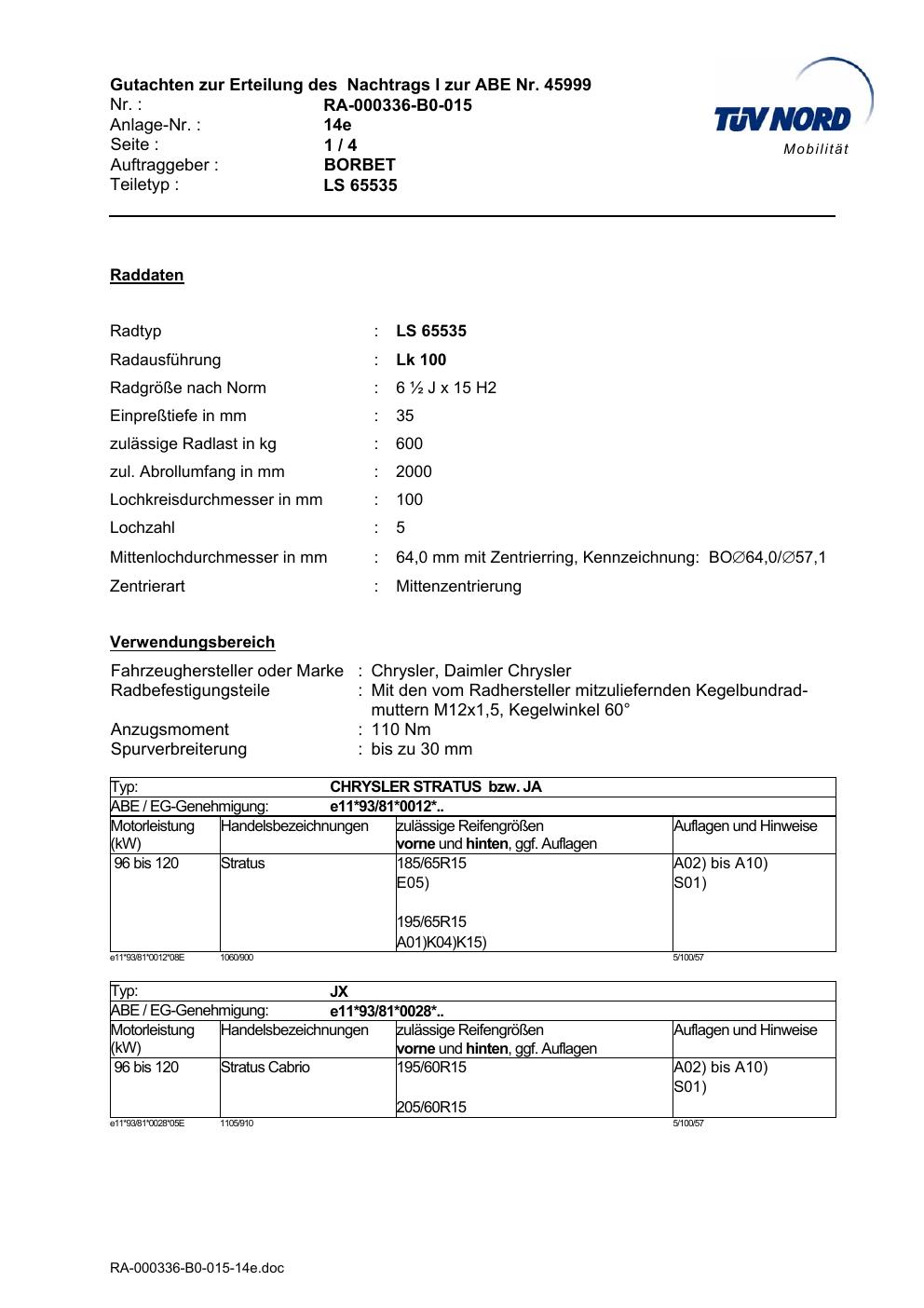 Dieses Dokument ist vor allem dann hilfreich, wenn du bereits eine konkrete KBA-Nummer, eine bestimmte Felge oder eine bekannte Zollgröße suchst.