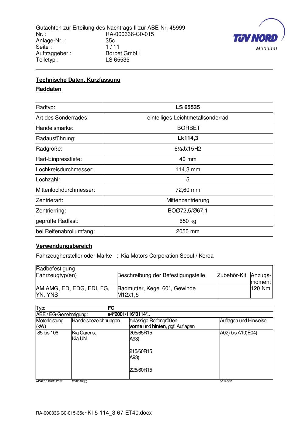 • Stimmt die KBA-Nummer auf der Felge mit diesem Dokument überein?