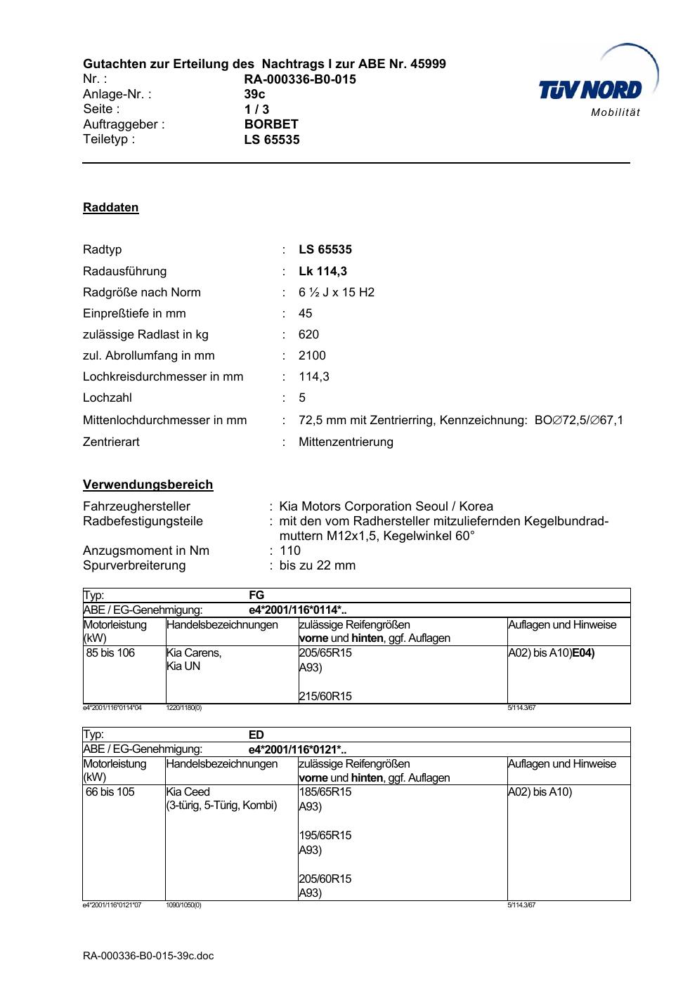 • Stimmt die KBA-Nummer auf der Felge mit diesem Dokument überein?