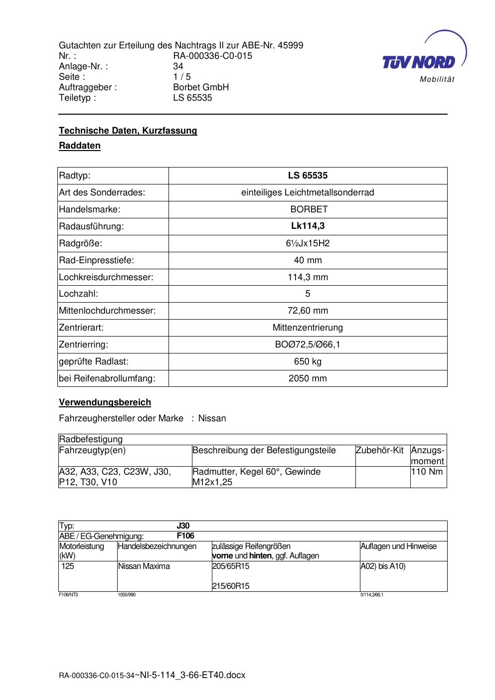 • Stimmt die KBA-Nummer auf der Felge mit diesem Dokument überein?
