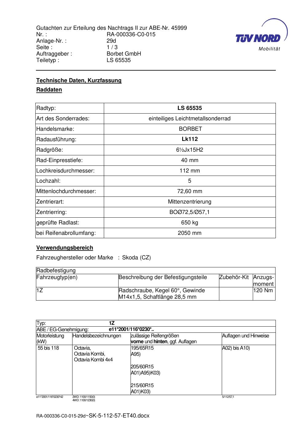 • Stimmt die KBA-Nummer auf der Felge mit diesem Dokument überein?