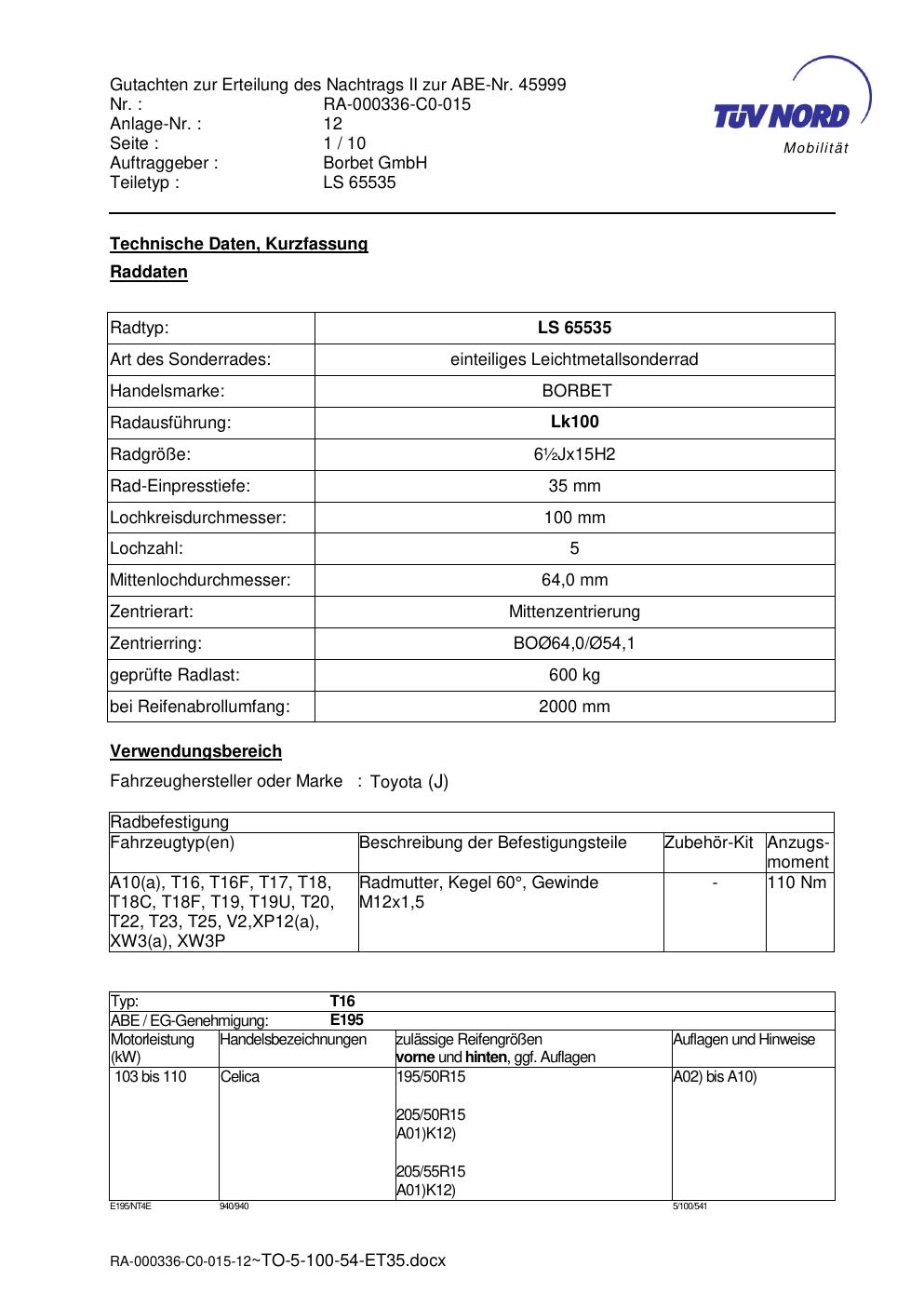 • Stimmt die KBA-Nummer auf der Felge mit diesem Dokument überein?