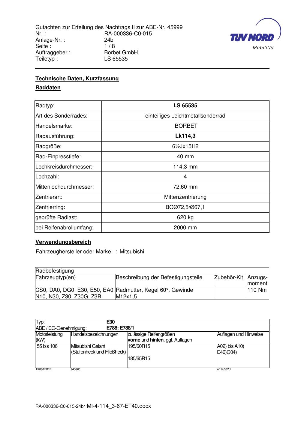 • Stimmt die KBA-Nummer auf der Felge mit diesem Dokument überein?