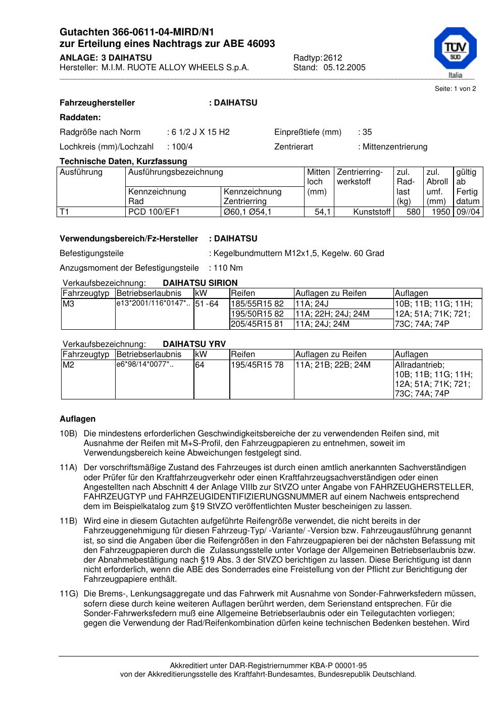 Dieses Gutachten (abe) bezieht sich auf die Alufelge ATS 2612 in der Ausführung 2Jx15 ET 0, Mittenloch 0 mm (KBA 46093). Im PDF findest du typischerweise zulässige Reifengrößen, Auflagen/Anbauhinweise und – je nach Dokument – Hinweise zur Eintragung.