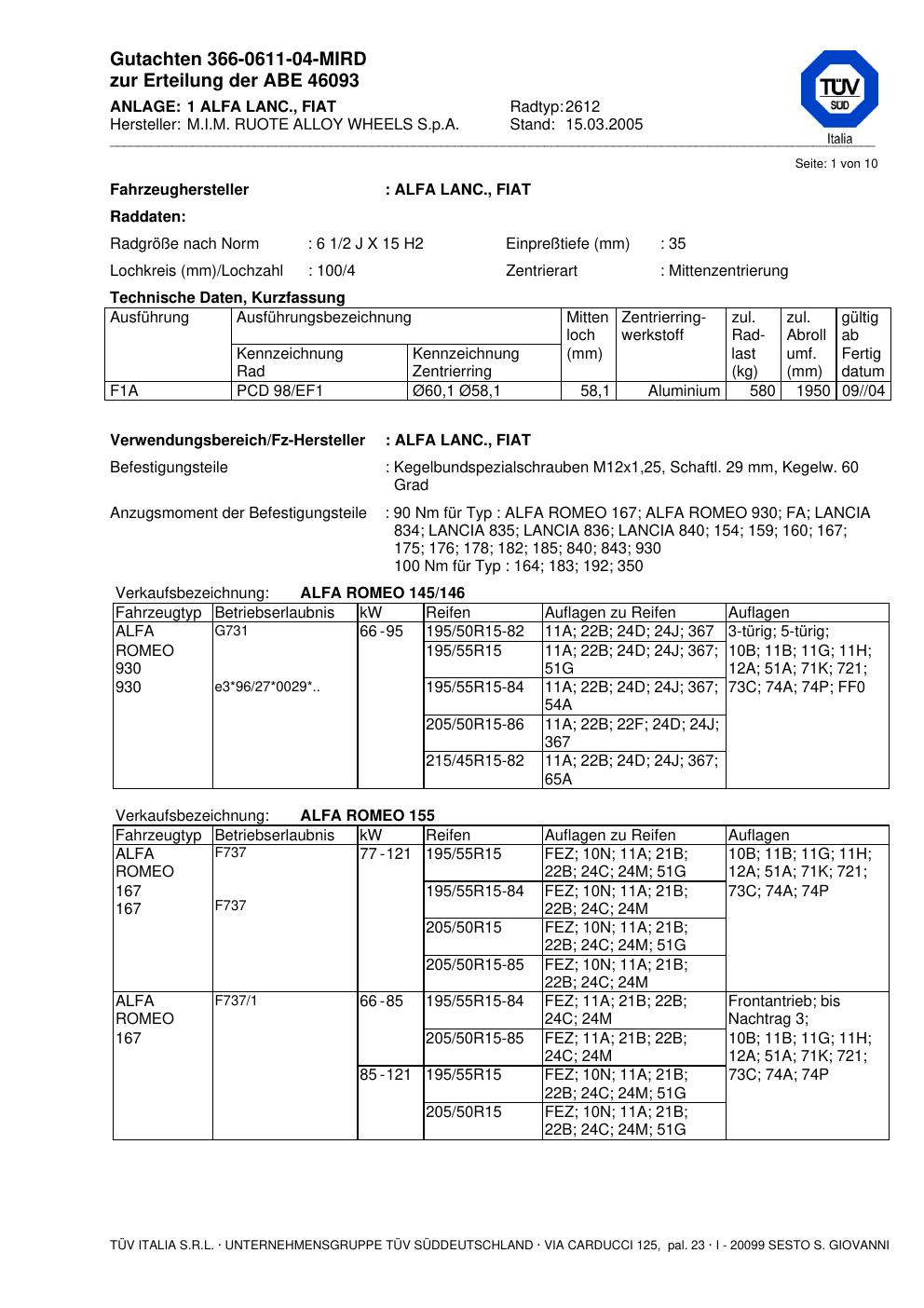 Felgengutachten / abe für Alufelgen ATS 2612 (2Jx15 ET 0, Mittenloch 0 mm) mit KBA 46093 (Zertifikatsnummer 46093). Hier kostenlos als PDF herunterladen. Der Download-Link ist 24 Stunden gültig und kann bis zu zwei Mal verwendet werden.