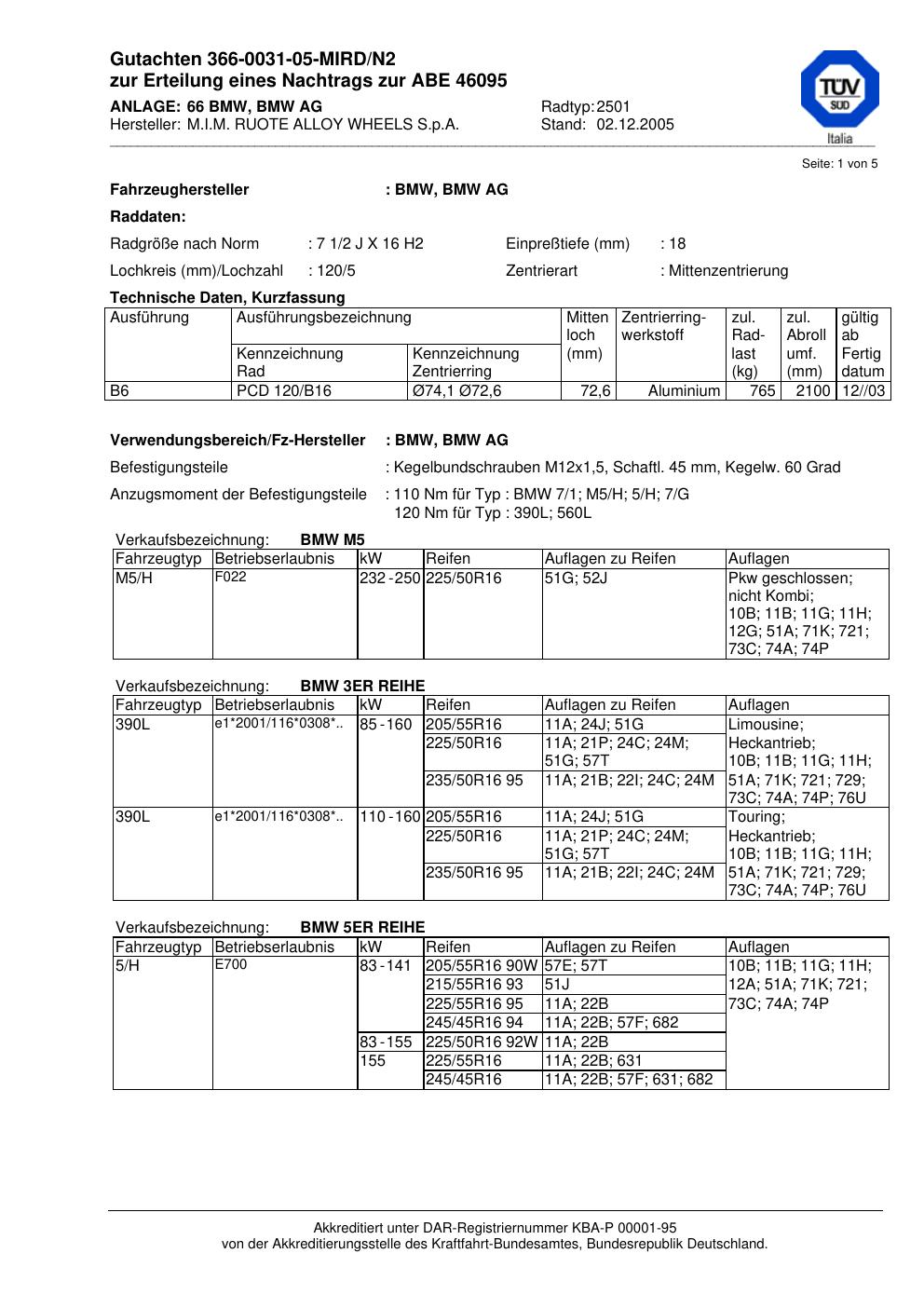 Dieses Gutachten (abe) bezieht sich auf die Alufelge ATS 2501 in der Ausführung 2Jx16 ET 0, Mittenloch 0 mm (KBA 46095). Im PDF findest du typischerweise zulässige Reifengrößen, Auflagen/Anbauhinweise und – je nach Dokument – Hinweise zur Eintragung.
