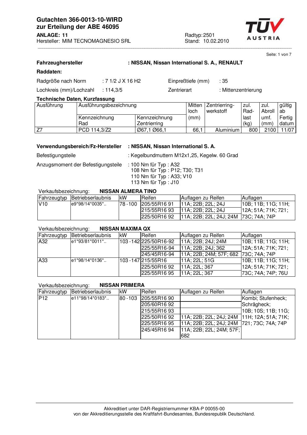 Dieses Gutachten (abe) bezieht sich auf die Alufelge ATS 2501 in der Ausführung 2Jx16 ET 0, Mittenloch 0 mm (KBA 46095). Im PDF findest du typischerweise zulässige Reifengrößen, Auflagen/Anbauhinweise und – je nach Dokument – Hinweise zur Eintragung.