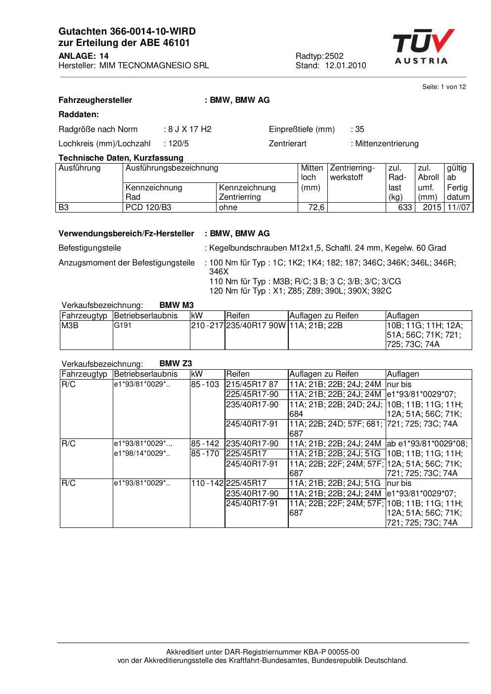 Dieses Gutachten (abe) bezieht sich auf die Alufelge ATS 2502 in der Ausführung 8Jx17 ET 0, Mittenloch 0 mm (KBA 46101). Im PDF findest du typischerweise zulässige Reifengrößen, Auflagen/Anbauhinweise und – je nach Dokument – Hinweise zur Eintragung.
