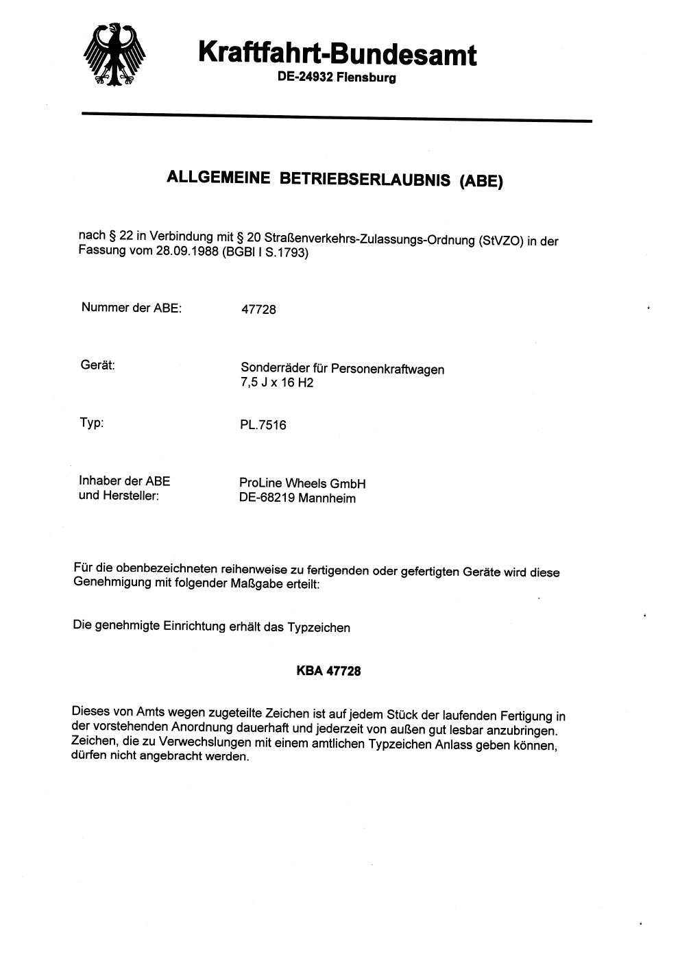 Dieses Gutachten (abe) bezieht sich auf die Alufelge ATS PL7516 in der Ausführung 7.5Jx16 ET 0, Mittenloch 0 mm (KBA 46159). Im PDF findest du typischerweise zulässige Reifengrößen, Auflagen/Anbauhinweise und – je nach Dokument – Hinweise zur Eintragung.
