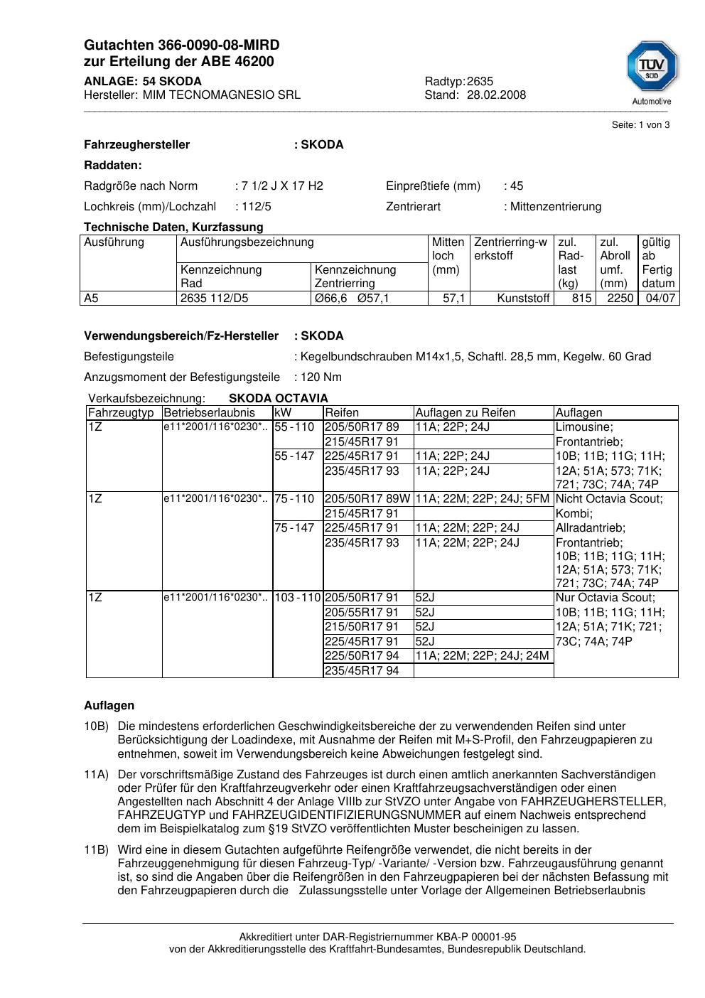 Felgengutachten / abe für Alufelgen ATS 2635 (2Jx17 ET 0, Mittenloch 0 mm) mit KBA 46200 (Zertifikatsnummer 46200). Hier kostenlos als PDF herunterladen. Der Download-Link ist 24 Stunden gültig und kann bis zu zwei Mal verwendet werden.