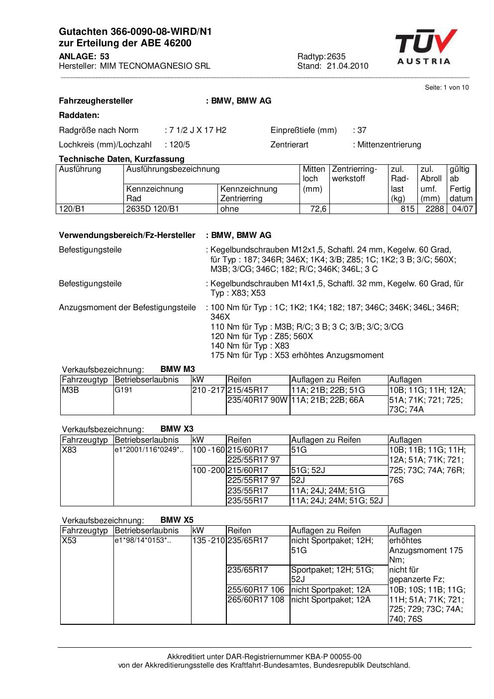 Felgengutachten / abe für Alufelgen ATS 2635 (2Jx17 ET 0, Mittenloch 0 mm) mit KBA 46200 (Zertifikatsnummer 46200). Hier kostenlos als PDF herunterladen. Der Download-Link ist 24 Stunden gültig und kann bis zu zwei Mal verwendet werden.